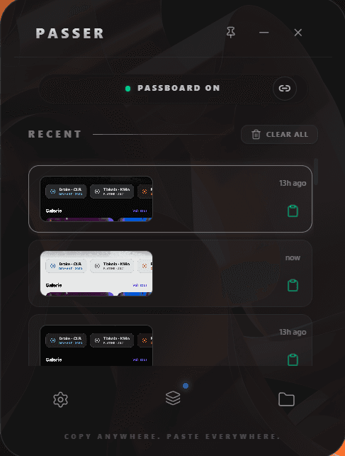 Passer est un utilitaire ultra-rapide conçu pour combler le fossé entre Windows et iOS. Il permet une synchronisation instantanée du flux de travail à travers les appareils, sans passer par le cloud. L'application tire parti des Raccourcis iOS pour offrir une expérience profondément intégrée : envoi de presse-papiers, de fichiers ou de photos d'un simple geste. Elle inclut également 'Passer Space', un serveur WebDAV local transformant le PC en un lecteur partagé sans fil pour l'iPhone.